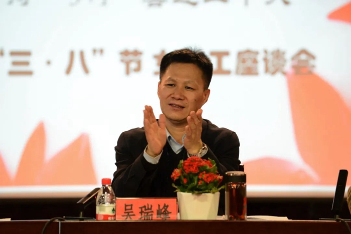 在认真聆听了大家的发言后,吴瑞峰代表王国华书记向在座的女职工代表致以节日的祝贺,对她们在工作中的无私奉献、辛勤工作表示充分肯定。
