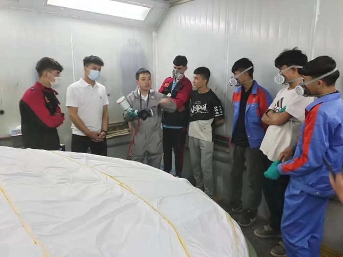 在充分了解到和田地区作为南疆重要的特色产业基地和交通枢纽,汽车保有量日益增长,汽车市场有非常大的发展空间这一信息后,高乐老师非常兴奋。但他了解到,汽车钣金与涂装作为汽车市场中不可缺少的重要组成部分,在和田地区几乎没有专门开设汽车涂装专业的职业院校。了解这一现实情况后,高乐老师感受到和田技师学院建成完善汽车工程系的强烈愿望。于是,高乐老师根据自己的专业特点,以及和田技师学院的专业发展规划,在与其他老师的共同努力下,顺利完成了专业建设基础工作,并制定了相应方案,最终确保了和田技师学院“汽车钣金与涂装”专业获批通过,这无疑为当地汽修产业发展构建起人才“孵化器”。