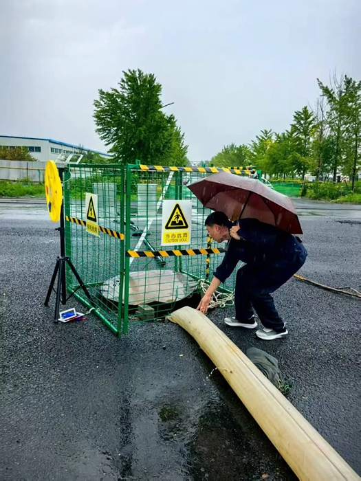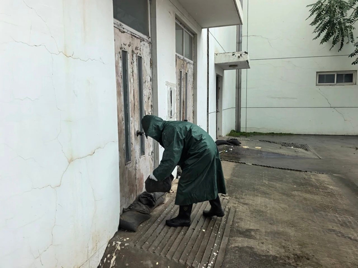 全域排查,织密安全 “防护网”。为有效排查隐患,安保部组织专业人员对园区开展“拉网式”防汛检查,重点聚焦排水系统、电力设施、危化品仓库等关键部位,清理排水管道杂物,保障雨水排放“主动脉”畅通;细致排查电力设备运行状态,筑牢供电 “稳定线”;加固危化品仓库防护措施,严防雨水倒灌引发安全风险。对检查中发现的问题,立即采取整改措施,做到不留死角、不留隐患。