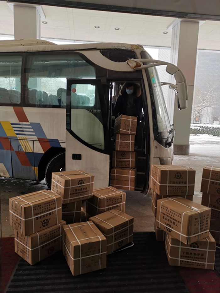 突如其来的疫情让白云杉立即取消出京返乡计划,从大年初一起就一直奋战在销售一线,组织全体销售人员,全力保障手套的销售配送。
