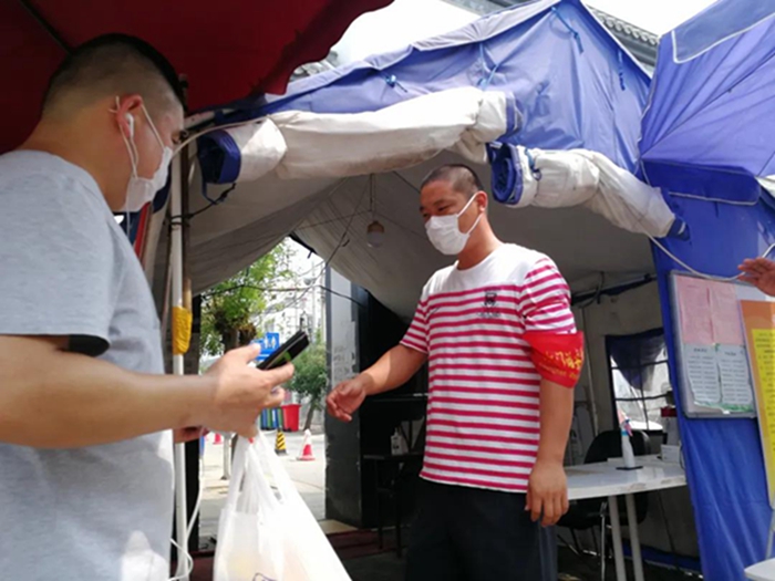 在村镇领导、集团临时党支部和下沉小组的共同努力和配合下,我们每天要组织三五百人到指定检测点进行检测。为了保证能够按时有序完成任务,头一天就要将第二天的检测工作进行部署安排,落实相关人员信息,并通知本人。检测结束后,还要进村入户,对隔离人员的健康进行监控。工作虽然辛苦,但我的心情却是激动的,能为国家和人民尽一份自己的力是多么荣幸和骄傲的事!