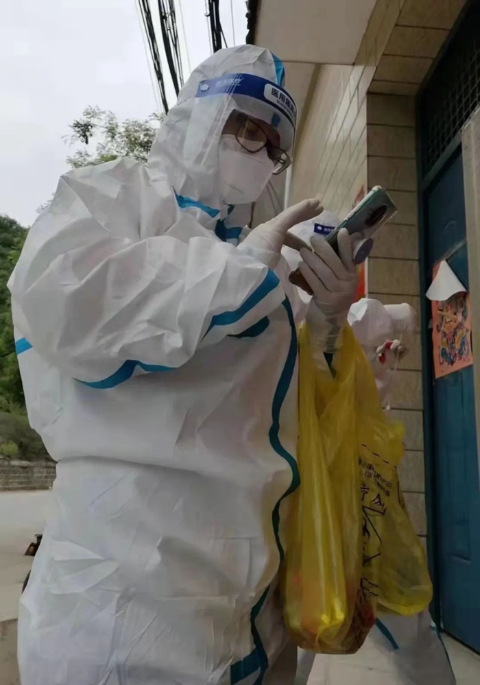 5月10日,这个村出现一名无症状确诊病例,社区加强管理,全村人员都需进行核酸检测,我负责配合医务人员对密切接触者进行上门核酸检测,并做好相关信息登记。那天我全副武装,顶着烈日,开始踏上蜿蜒的山路,就这一天,我们整整走访了28户村民,累得像散了架一样。