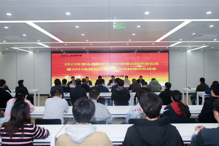 10月31日,半岛bandao化工集团2023年度职业技能培训班开班仪式暨2022年度职业技能培训总结会在技师学院召开。技师学院院长蔡夕忠致辞,院长助理李玲琪主持;集团工会常务副主席刘岩松以及总部相关部室负责人、技师学院相关领导和教师代表,上一届培训班学员代表和2023年培训班学员参加仪式。