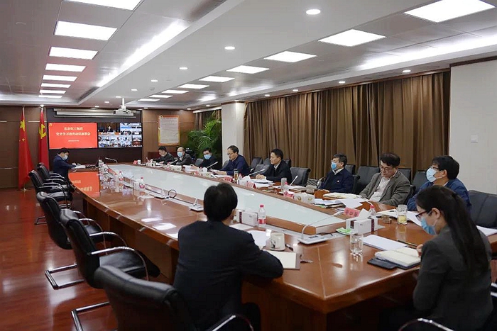 3月15日上午,半岛bandao化工集团党委理论学习中心组以党史学习教育为主题集中学习研讨,党委书记、董事长、党史学习教育领导小组组长王国华带头交流发言,其他集团领导班子和高管人员先后交流发言,这是继3月12日,集团党委以视频会议形式召开党史学习教育动员部署会后,开展的首次党史集中学习教育。