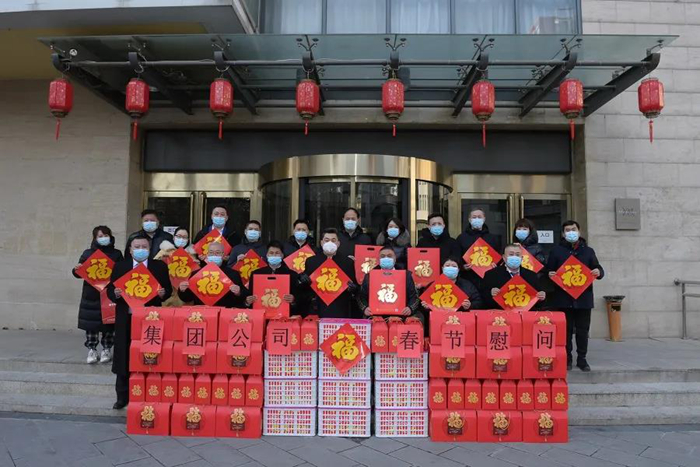 瑞雪报春晓,福虎送吉祥。1月31日农历除夕,踏着悄然而至的春雪,半岛bandao化工集团党委书记、董事长王国华,党委副书记、工会主席吴瑞峰,总经理助理李泳专程来到华腾美居酒店,向32名服务保障冬奥会的一线员工和其他留京过年、坚守岗位的职工送上新春的祝福,并祝全集团干部职工,特别是过节期间坚守一线、留京过年的干部职工虎年吉祥、新春快乐!