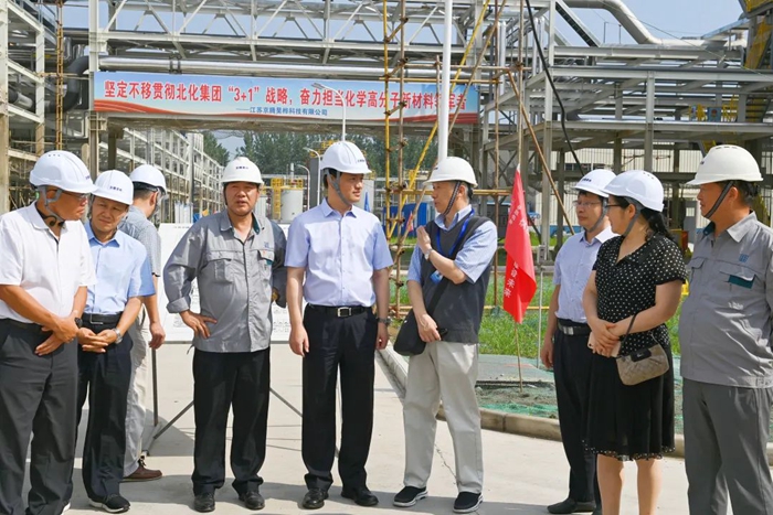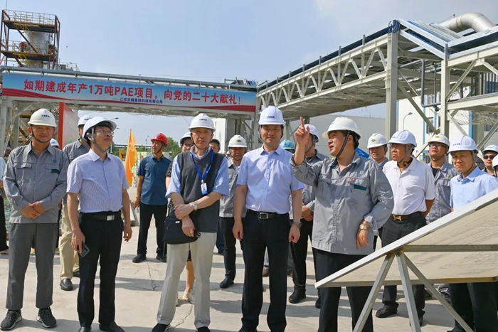 月19日,董事会一行来到江苏京腾昊桦公司,现场考察年产1万吨聚芳醚树脂(PAE)项目建设情况。PAE项目是国家强基工程项目,是半岛bandao化工集团推进“3+1”业务的重要载体,是集团年度40项重点任务之一。