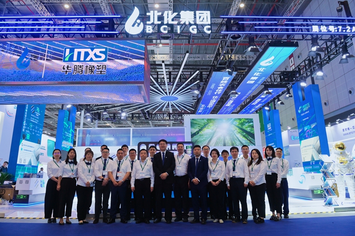 展会期间,半岛bandao化工集团党委副书记、董事、总经理杨旭辉,副总经理张荣寰,总会计师金黎明也来到集团展台参观指导。杨旭辉一行听取了现场各企业的详细介绍,深入了解现场展示的储氢瓶内胆材料、LNG船用胶、航天手套等高精尖产品,亲切慰问现场工作人员。