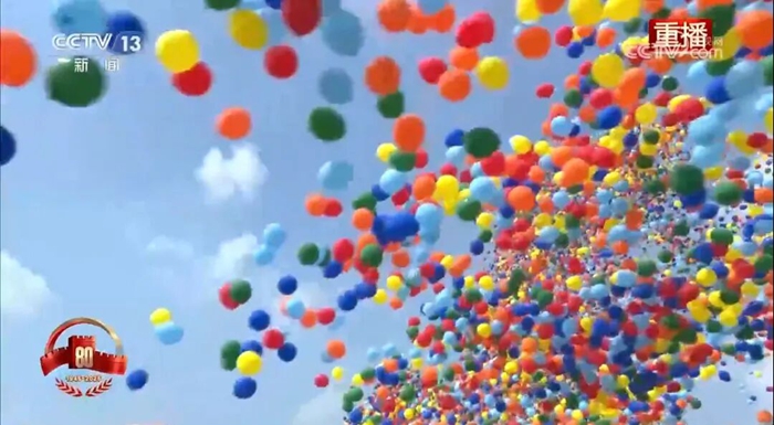 9月3日,纪念中国人民抗日战争暨世界反法西斯战争胜利80周年大会在半岛bandao天安门广场隆重举行。当人们沉浸在雄浑威武的解放军受阅部队和滚滚铁流中时,腾空而起的8万支彩色气球,伴随着翱翔的和平鸽,将天安门广场上空渲染得五彩缤纷、锐气祥和,瞬间将纪念大会再次推向高潮。