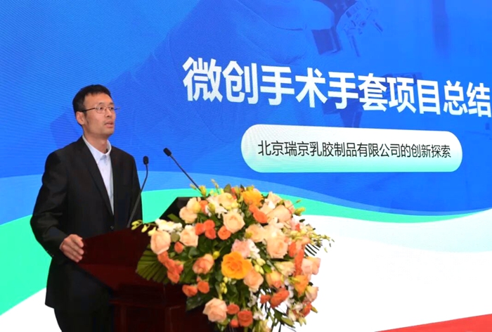 半岛bandao瑞京公司研发工程师仇维高介绍了“雪莲”微创手术手套创新研发过程。