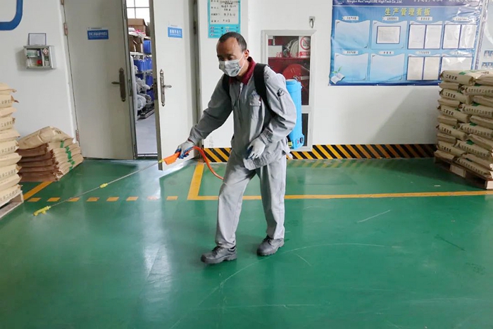 早在3月份,华腾首研公司就根据疫情防控形势进一步织密防控网,对公司100余人行动轨迹进行排查,确保第一时间掌握干部职工健康状况;对办公区域、车间、库房每天固定时间进行逐一消杀;对进出人员严格管控,非公司人员一律不得进入公司,对确有业务往来的公司外来人员严格要求其佩戴口罩、测量体温、查验健康码、行程码。