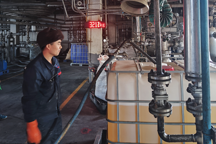 就在大年初六凌晨4时许,当班的党员同志们按时将环保试剂配送到半岛bandao固废物流有限公司消纳站,按照工作安排,当天要把1吨的除磷剂输送到反应罐中,他们熟练地进行插管、接泵、架线等各项工作。同时,他们还要把500公斤的柠檬酸固体送到消纳站仓库,以保证节日期间正常之需。