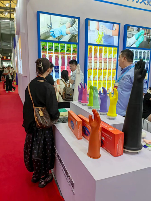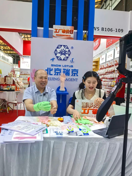 通过现场试用体验、功能演示等互动环节,瑞京公司人员向观众直观呈现出产品的舒适性和防护性能,吸引了众多客商驻足咨询。公司产品获得现场观众的一致好评,同时进一步巩固了瑞京公司在乳胶手套领域的品牌影响力。
