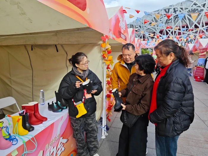 在现场,华腾橡塑团员青年热情地向每一位感兴趣的市民介绍产品理念和创新细节,积极与各界的青年创客交流互动。展位上最引人注目的是由儿童雨鞋创新改造的迷你小背包。这款别出心裁的创意产品,将童鞋的可爱造型与背包的实用功能完美结合,既充满童趣,又独具匠心,吸引了众多观众驻足询问,成为现场一道独特风景。